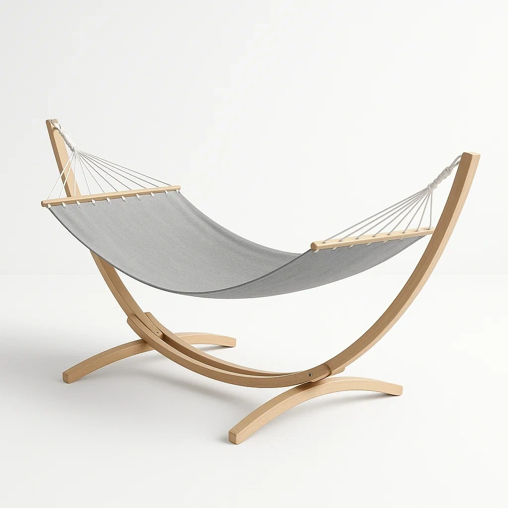 Amaca con Struttura in Legno e Tessuto in Cotone Grigio
