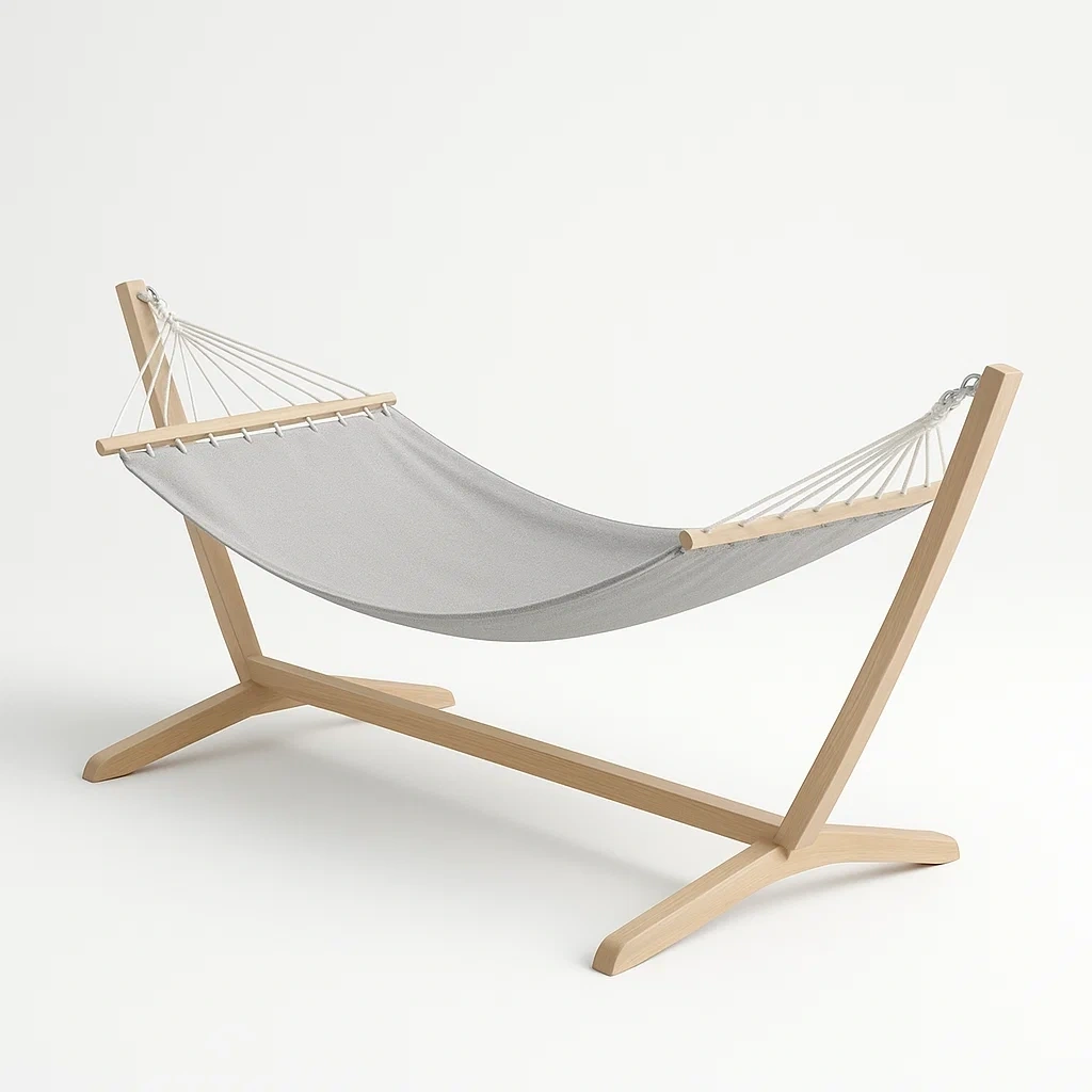 Amaca con Struttura in Legno e Tela Grigio/Naturale