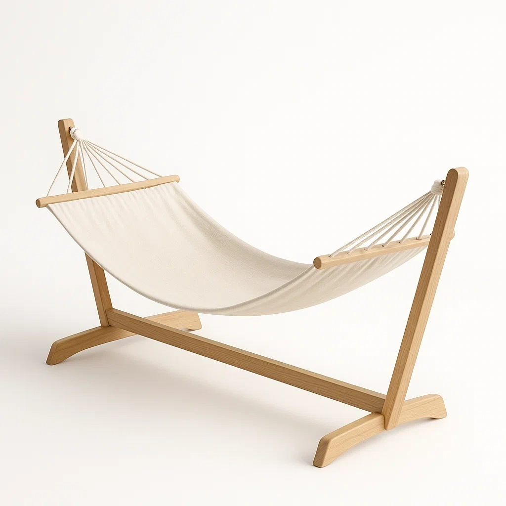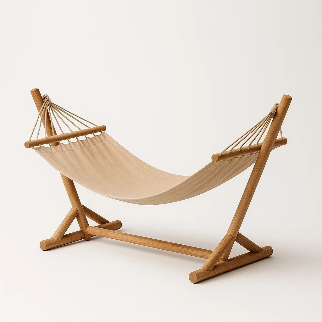 Amaca con Struttura in Legno di Faggio e Tela di Cotone Beige 200x100 cm