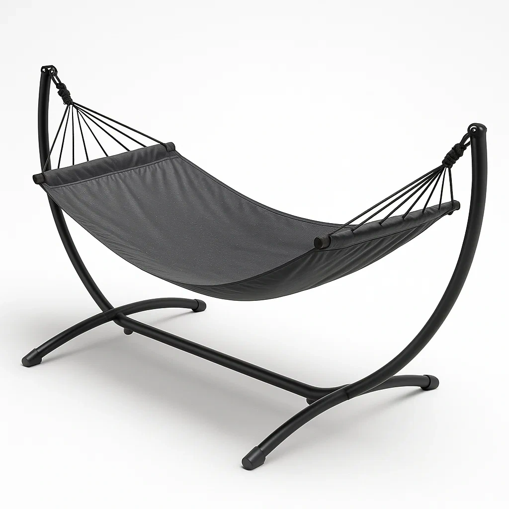 Amaca in Poliestere Nero con Supporto Curvo in Acciaio