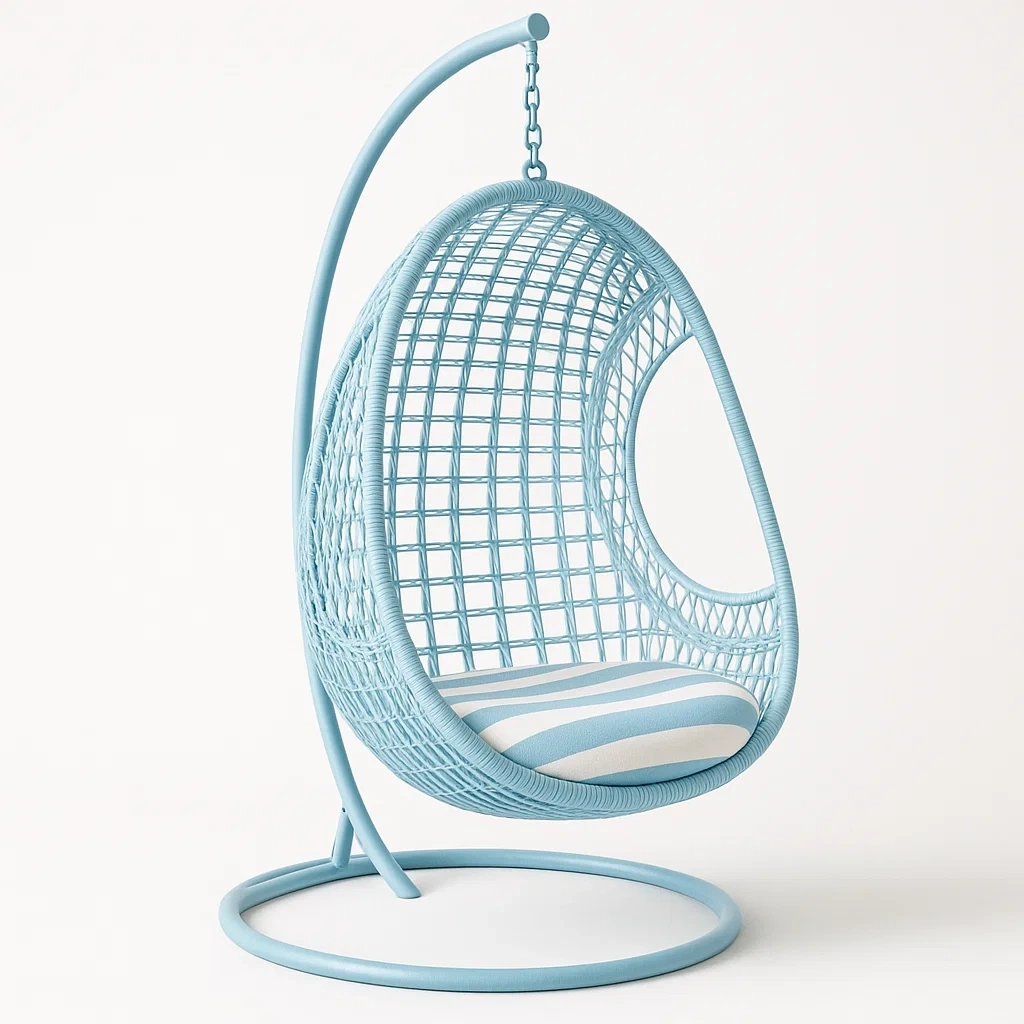 Poltrona sospesa in metallo e rattan sintetico 126x100x75 cm celeste