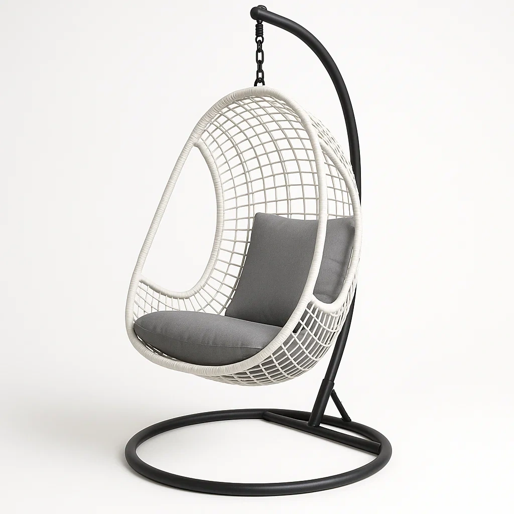 Poltrona sospesa in rattan sintetico con supporto in acciaio