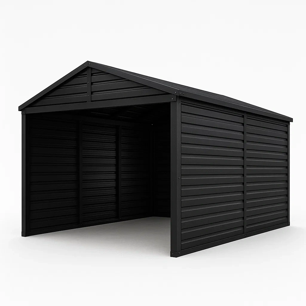 Tettoia per auto in acciaio zincato nero 397x260x256 cm.