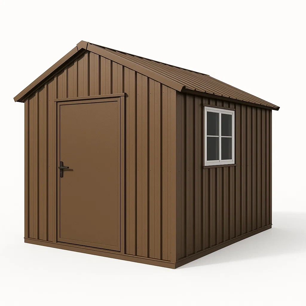 Casetta da giardino in metallo marrone con porta e finestra 200x150x180 cm