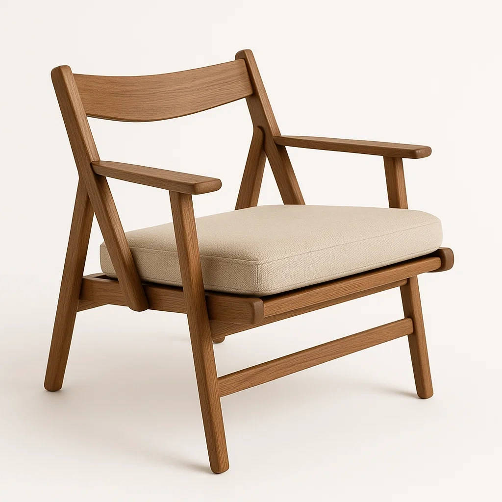 Poltrona in legno con cuscino in poliestere crema altezza 80cm larghezza 70cm profondità 70cm