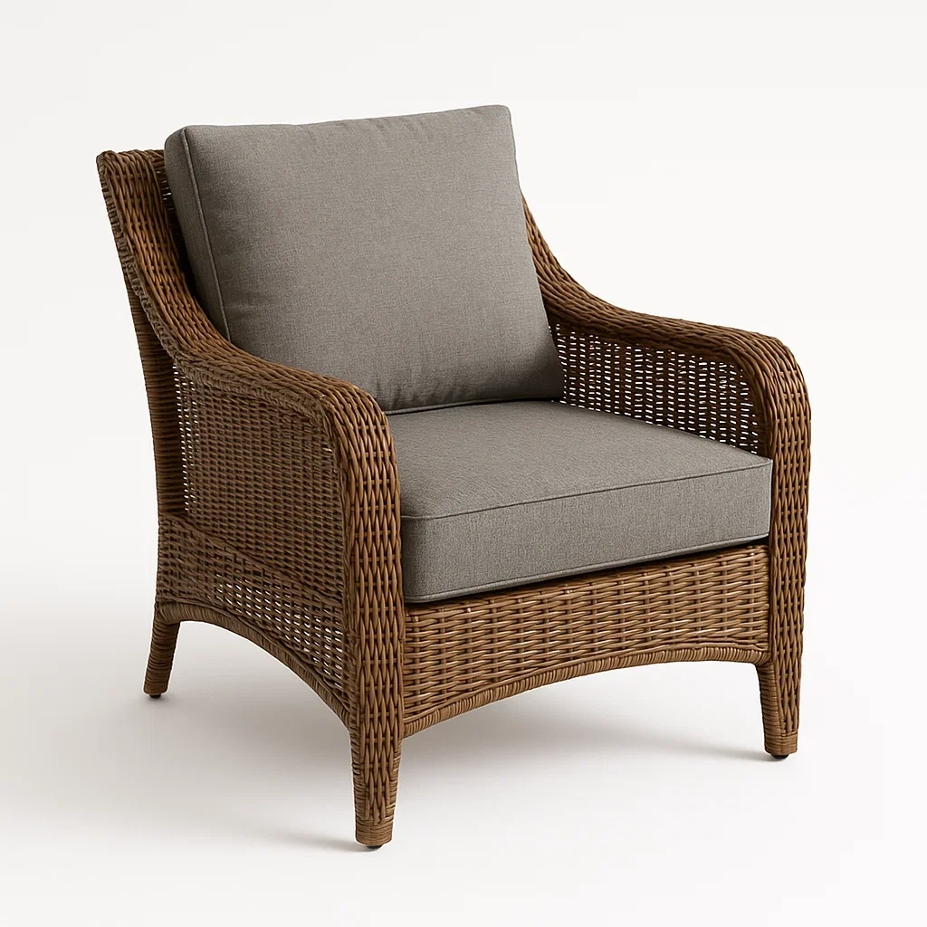Materiale: Struttura in rattan sintetico, cuscino in tessuto di poliestere, imbottitura in schiuma poliuretanica.
