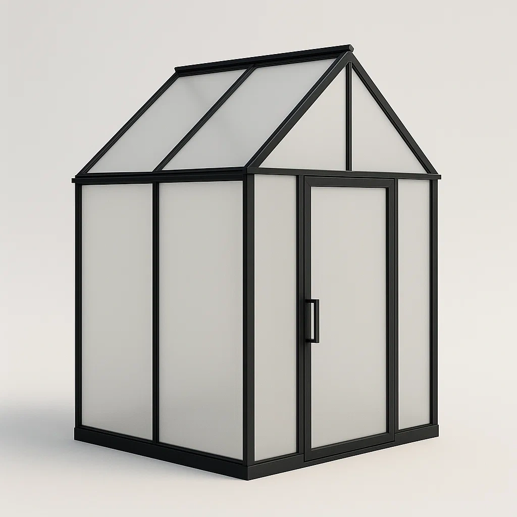 Questa serra presenta una struttura in alluminio verniciato nero resistente alle intemperie.